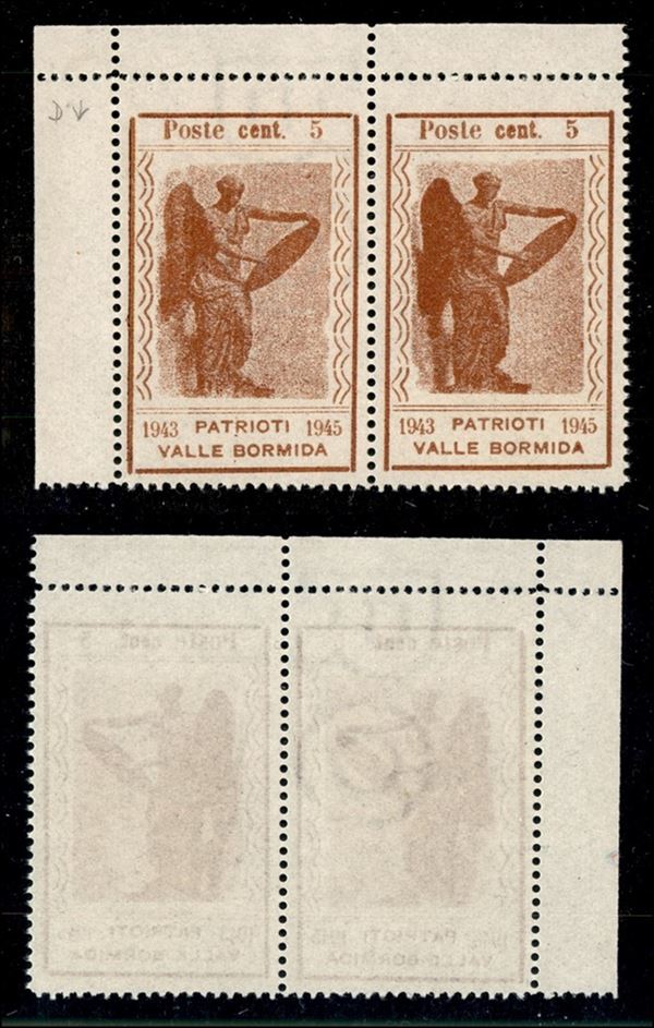1945 - 5 cent Vittoria (9bb + 9) - coppia angolare - filigrana RO a sinistra - sempre senza gomma (372+)