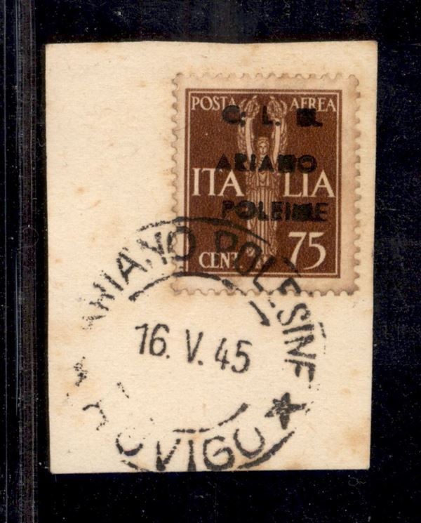 1945 - 75 cent (Errani 16i + l) usato su frammento - ; dopo c + Poleine - raro - cert. AG
