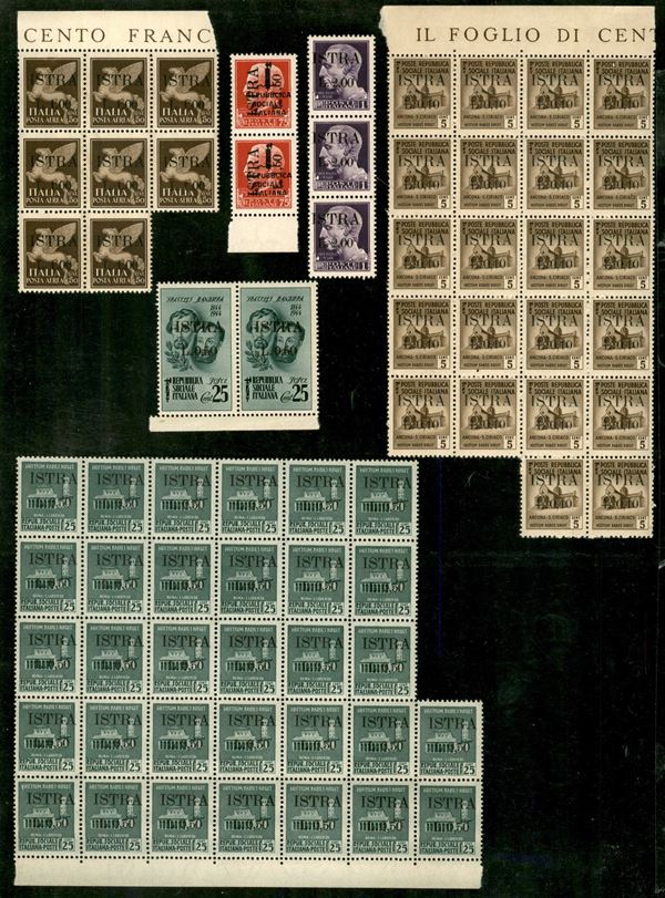 1945 - Piccolo insieme di valori (22+24/25+27+29+31+35) su cartoncino - gomma originale/integra - da esaminare