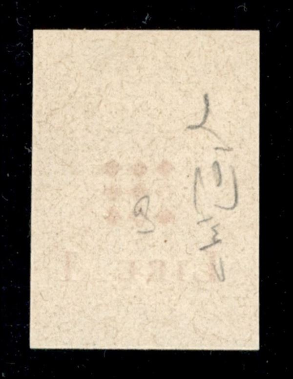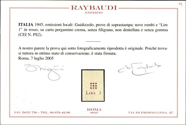 1945 - Prova di Macchina della soprastampa in rosso (1B) - sempre senza gomma - cert. Raybaudi
