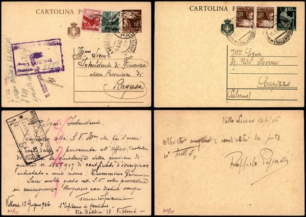 1946 (14/15 giugno) - due cartoline postali con affrancature complementari del periodo