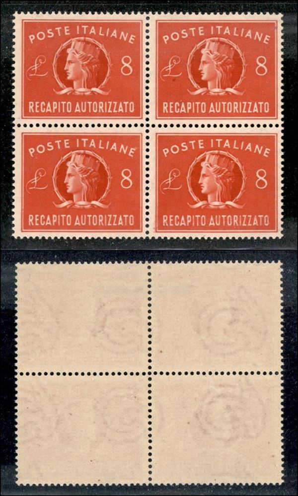 1947 - Recapito Autorizzato - 8 lire (9) in quartina - gomma integra (160+)
