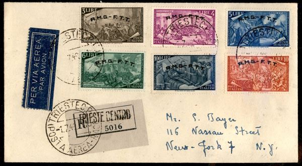 1948 (1 luglio) - Trieste New York - FDC Risorgimento - la serie su 2 aerogrammi raccomandati