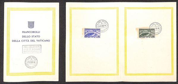 1949 - Posta Aerea - UPU (18/19) - serie completa usata su folder dell'emissione - 20.10.50