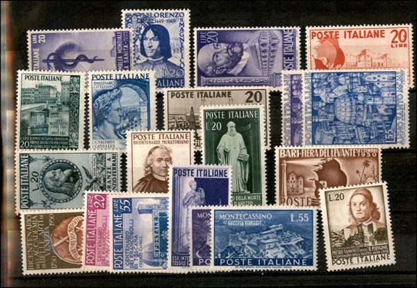 1949/1951 - Venti valori diversi (607/610 + 613/614 + 616 + 620/622 + 625/627 + 632 + 653/654 + 659 + 664/665 + 668) -gomma integra e linguellati da esaminare (282)
