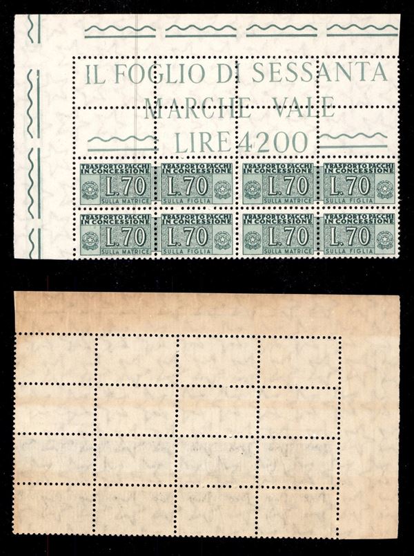 1955/1981 - 70 lire (8) in quartina angolo di foglio - gomma integra