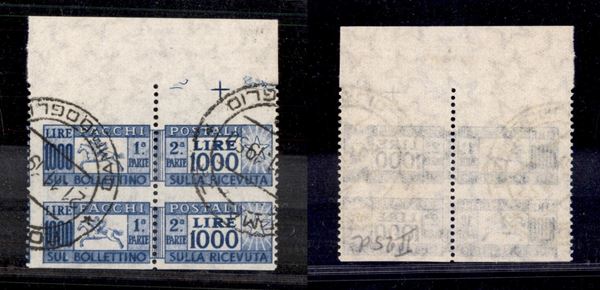 1957 - 1000 lire (102e) coppia bordo foglio non dentellata in orizzontale - usata