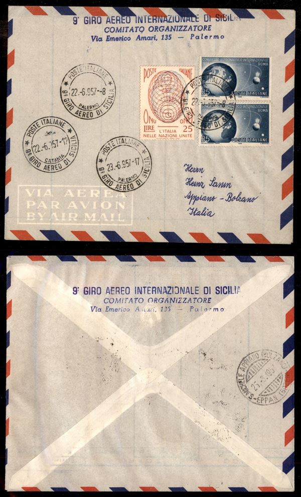1957 (22/23 giugno) - 9° Giro Aereo di Sicilia - aerogramma per Bolzano