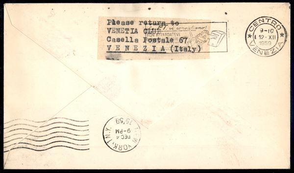 1959 (4 dicembre) - Roma New York - Boeing 707/Volo Inaugurale - aerogramma Venetia Club