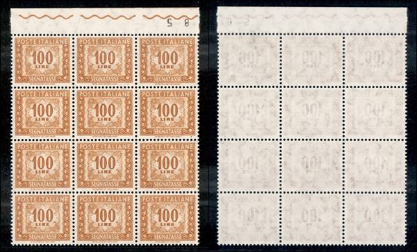 1976/1984 - Segnatasse - 100 lire (118/II - specializzato 45/I) - blocco di 12 - inchiostro fluorescente - gomma integra (270+)