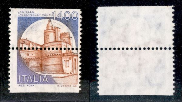 1983 - Vasto - 1400 lire Castelli (1527A) - dentellatura orizzontale al centro - gomma integra - ritagliato con le forbici in orizzontale