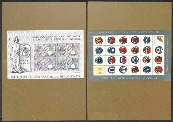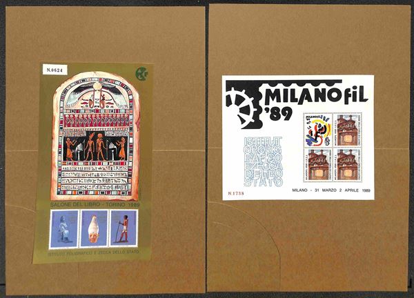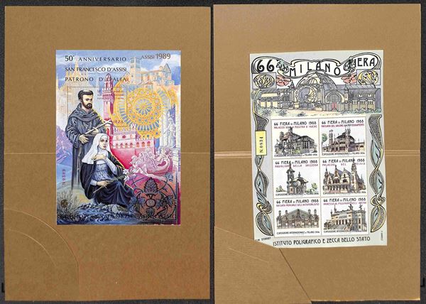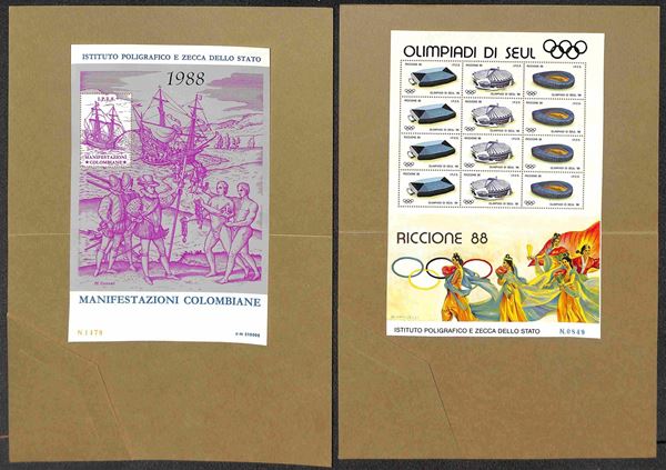 1988/1989 - Insieme di 10 diversi foglietti I.P.Z.S. erinnofili emessi nel periodo e completi di folder originale