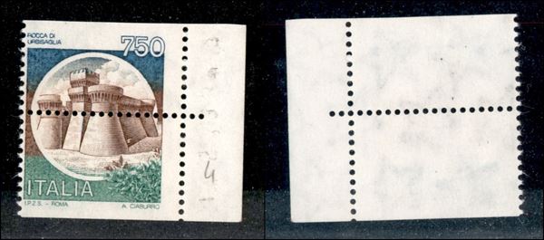 1990 - Urbisaglia - 750 lire Castelli (1524A) - dentellatura orizzontale al centro - gomma integra - ritagliato con le forbici in orizzontale