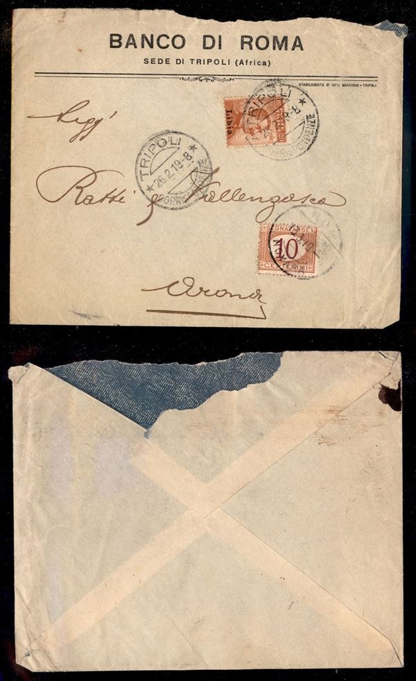 20 cent (20) su busta da Tripoli a Arona del 26.2.19 - tassata in arrivo