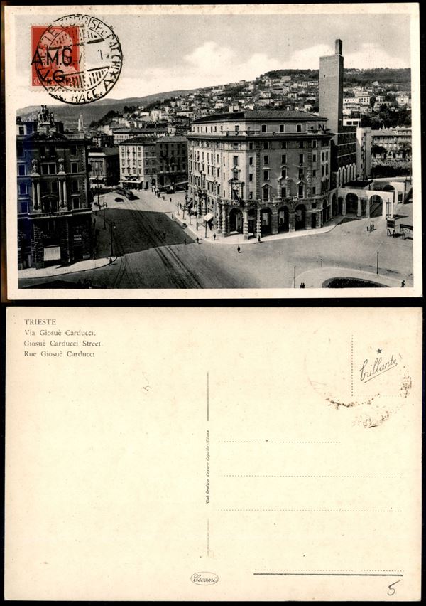 20 cent (4hk) con soprastampa spostata - usato su cartolina - Trieste 17.9.47