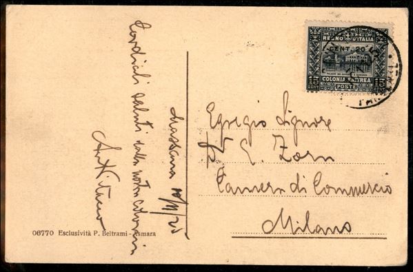 20 cent su 15 (46) - cartolina da Massaua a Milano del 10.11.25