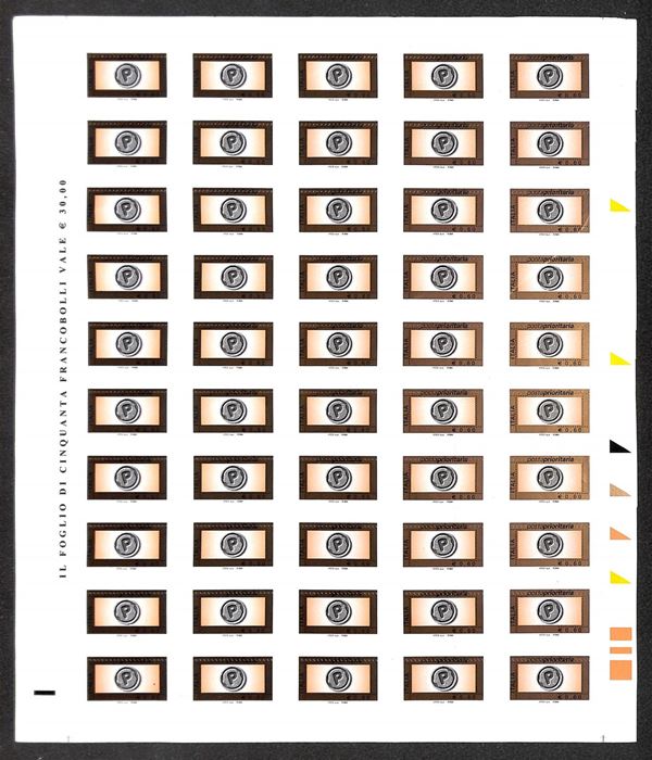2006 - 60 cent (2932A) con fustellatura spostata in basso a cavallo di Posta Prioritaria - intero foglio di 50