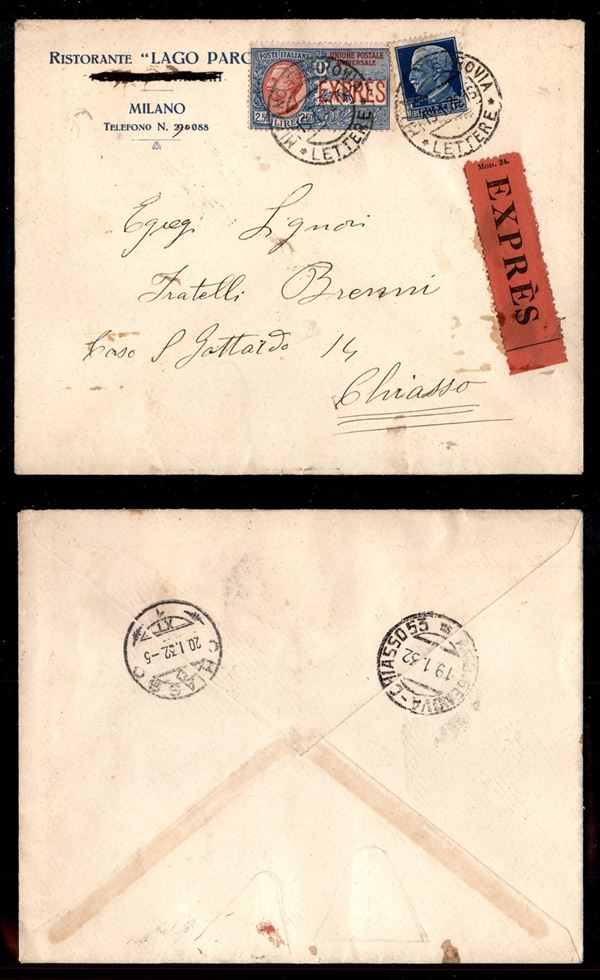 2,50 lire Espresso (14) + 1,25 lire Imperiale (253) - busta da Milano a Chiasso del 19.1.32
