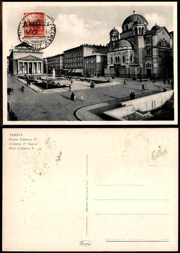 3 lire (15HK) con soprastampa spostata - usato su cartolina - Trieste 17.9.47