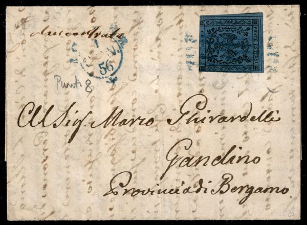 40 cent (10) isolato su letterina da Modena a Gandino del 1.1.1856 - corto in basso