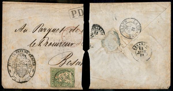 40 rappen (17) con due margini intaccati - parte di busta da Vevev a Besaucon del 8.1.61