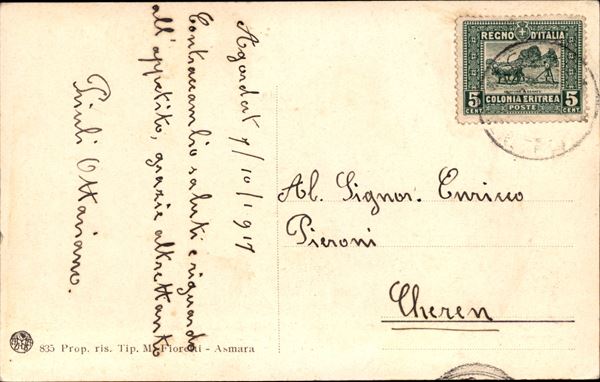 5 cent Soggetti Africani (34) isolato su cartolina per Keren del 7-10-1917