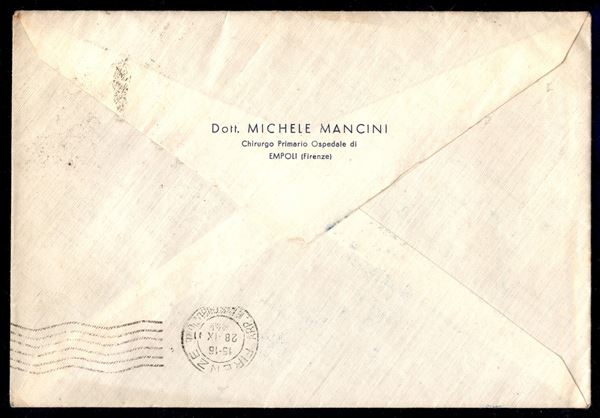 5 lire Biennale + 15 lire Biennale (594+595) su busta da Empoli a Firenze del 23.9.49