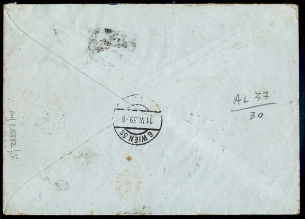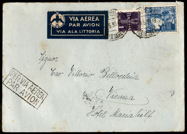 Aerogramma affrancato con 1,25 lire Impero (445) + 1 lira Imperiale Aerea (14) da Milano 9.6.39 per Vienna