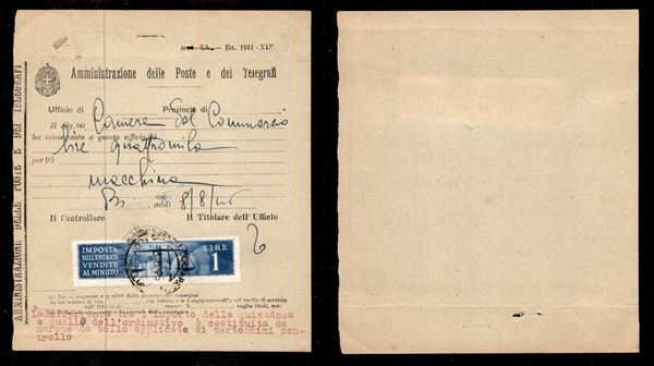 Brescia/Controllo 8.8.46 - 1 lira Imposta sull’entrate su modulo postale