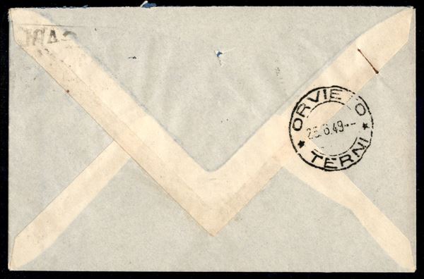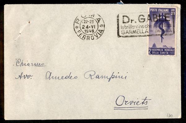 Busta affrancata con 20 lire OMS (607) da Roma 24.VI.1949 per Orvieto