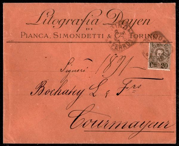 Busta commerciale affrancata con 20 cent su 30 cent Umberto (57) da Torino 2.6.91 per Courmayeur - ex coll. Provera