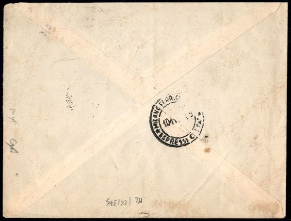 Busta "Espresso Aerea" (manoscritto) affrancata con coppia orizzontale del 25 lire Prudenza sulla Strada (815) + 50 lire Espresso (33) da Cagliari 9.11.957 per Milano