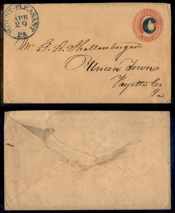Busta postale da 3 cent - Maunt Pleasant 29.4 + C (in azzurro)