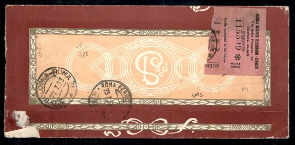 Busta "scena illustrata" raccomandata con affrancatura composta da Imperiale 25 cent + quattro 50 cent + 1,25 lire Espresso (248 + 251 + E15) da Firenze 22.7.33 indirizzata al Capo Ufficio Stampa del Capo del governo a Roma - bella e particolare