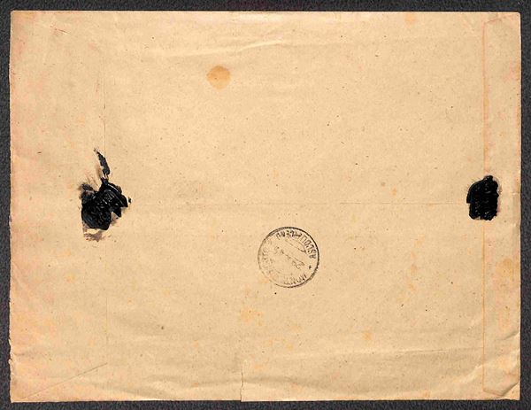 Bustone raccomandato affrancato con 1 lira + 25 lire Stemma (284 + 294) da S. Marino 23.4.48 per Monte Giberto - bollo d'arrivo
