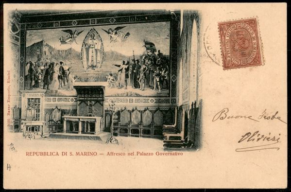 Cartolina affrancata con 2 cent Cifra (26) da S. Marino per Firenze