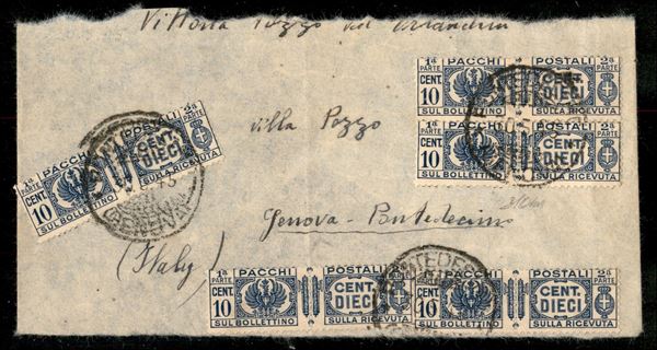 Cinque 10 cent (25) su parte di busta da Pontebba a Genova del 30.5.45 - Savarese