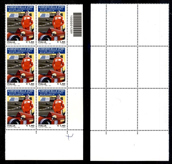 Codice a barre 1289 - blocco angolare di sei del 1,40 euro Sport (Michele Alboreto) 2009 - gomma integra
