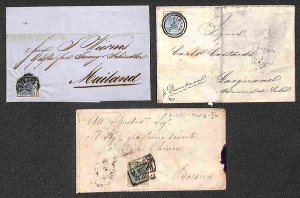 Due lettere da Trieste e una busta da Vienna col 9 kreuzer (5) del 1850/1854