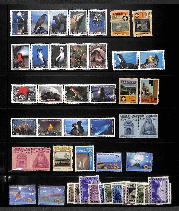 ECUADOR - 1865/2003 - Piccola collezione di valori serie complete e foglietti del periodo in 3 pagine di raccoglitore - gomma integra e originale