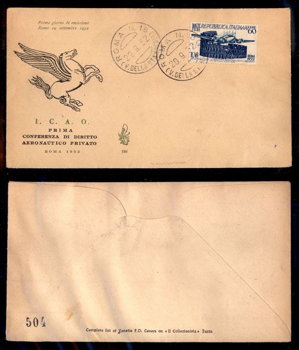 FDC Venetia - 60 lire ICAO (697) su busta - Roma 29.9.52