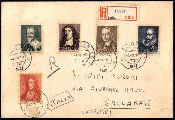 Illustri (490/494) - serie completa su raccomandata da Leiden a Varese del 4.8.47