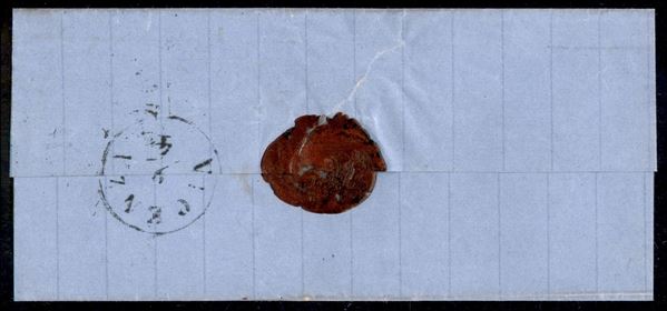 Involucro di letterina affrancata con 5 soldi (38) da Valdagno 8.4. per Vicenza - sigla Raybaudi