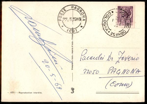 Lamborghini Ferruccio (imprenditore automobilismo) - autografo (non catalogato) su cartolina del 1969