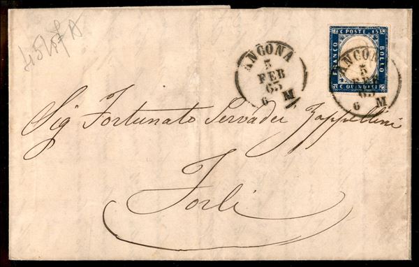 Lettera affrancata con 15 cent (11) da Ancona 5 feb. 63 per Forlė - ex coll. Provera