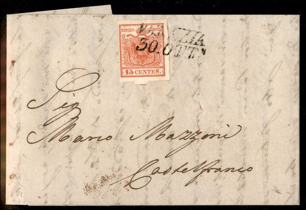 Lettera affrancata con 15 cent (3a) da Venezia 30 ott. (1850) per Castelfranco