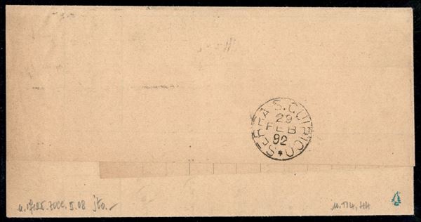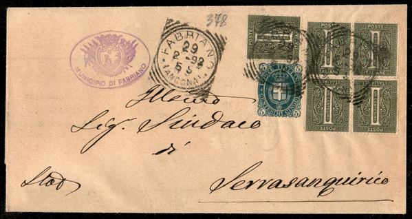 Lettera corrispondenza fra sindaci affrancata con cinque 1 cent (T14 quartina + singolo) + 5 cent Stemma (44) da Fabriano 29.2.92 per Serra San Quirico - ex coll. Provera