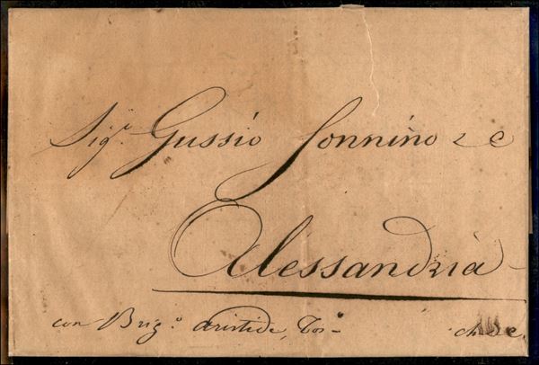 Lettera da Livorno a Alessandria del 6.4.1835 (con brig. Aristide Tos.) - fumigata
