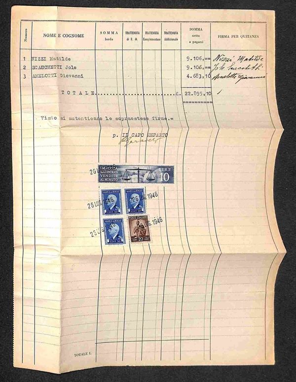 Marche da Boll su modulo di pagamento - Alessandria 26.7.46