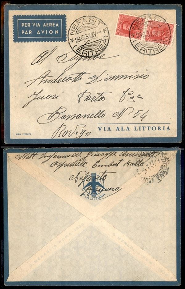 Nefasit (P.ti 9) - aerogramma per Rovigo del 29.6.37 (196 coppia Eritrea)